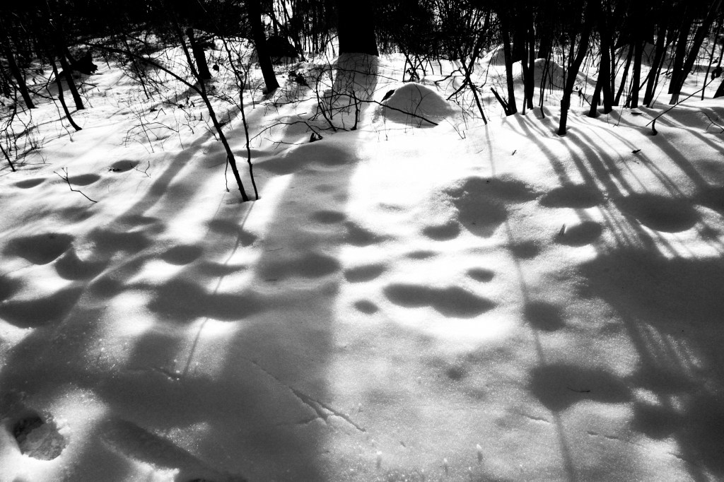 In lakeside woods late shadows crunch underfoot